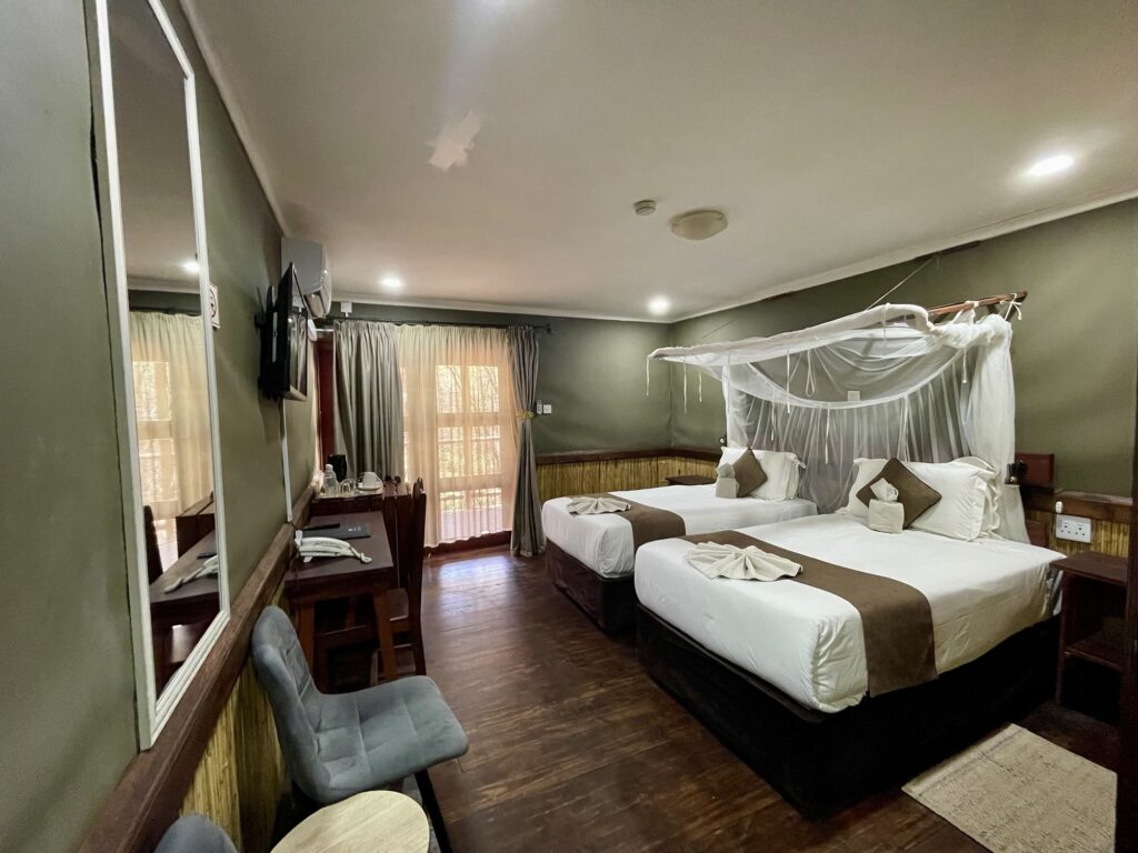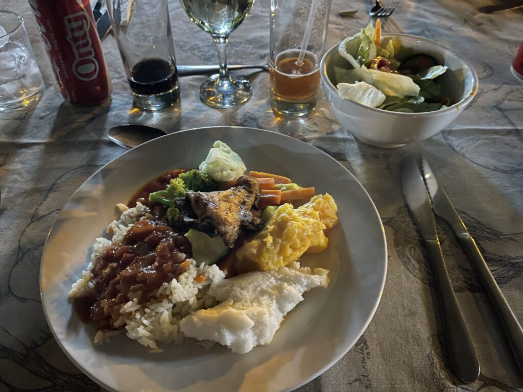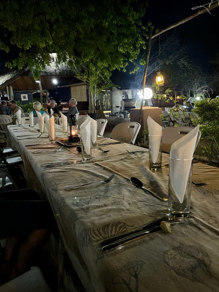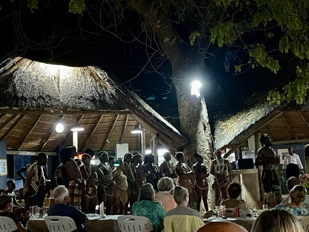 Es ging zurück zur Loge, dann kurz ins Zimmer, frisch gemacht. Um 19:00 zum essen, es gab Buffet, aber vorher kam noch eine afrikanische Tanzgruppe.