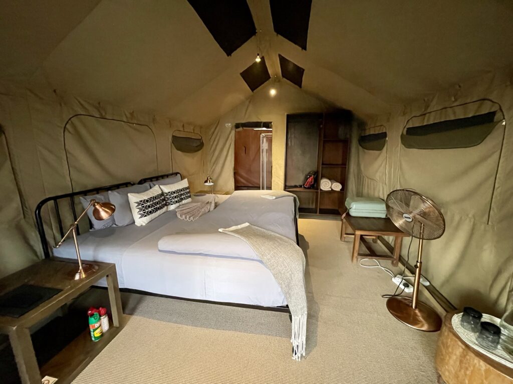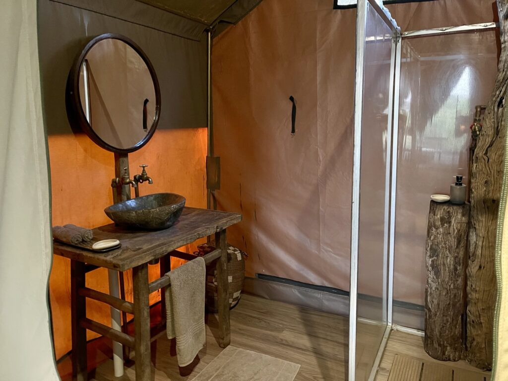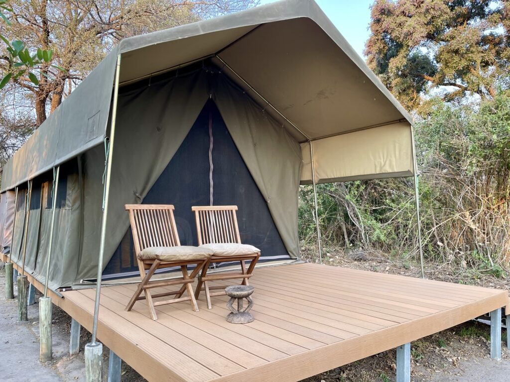 Wir gingen zu unserem Zelt, die Unterkunft liegt im „Okavango Delta“ direkt in der Natur.