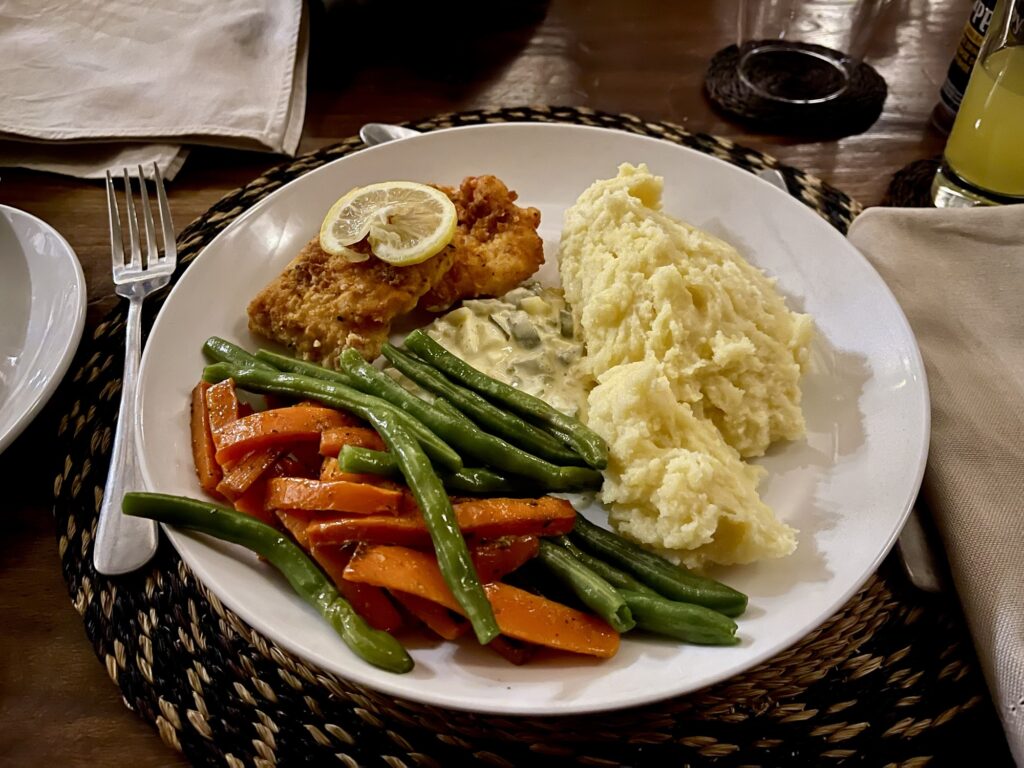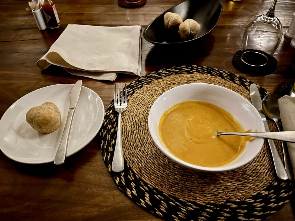 Wir gingen unter die Dusche und um 18:45 wurden wir abgeholt und liefen zum Haupthaus.