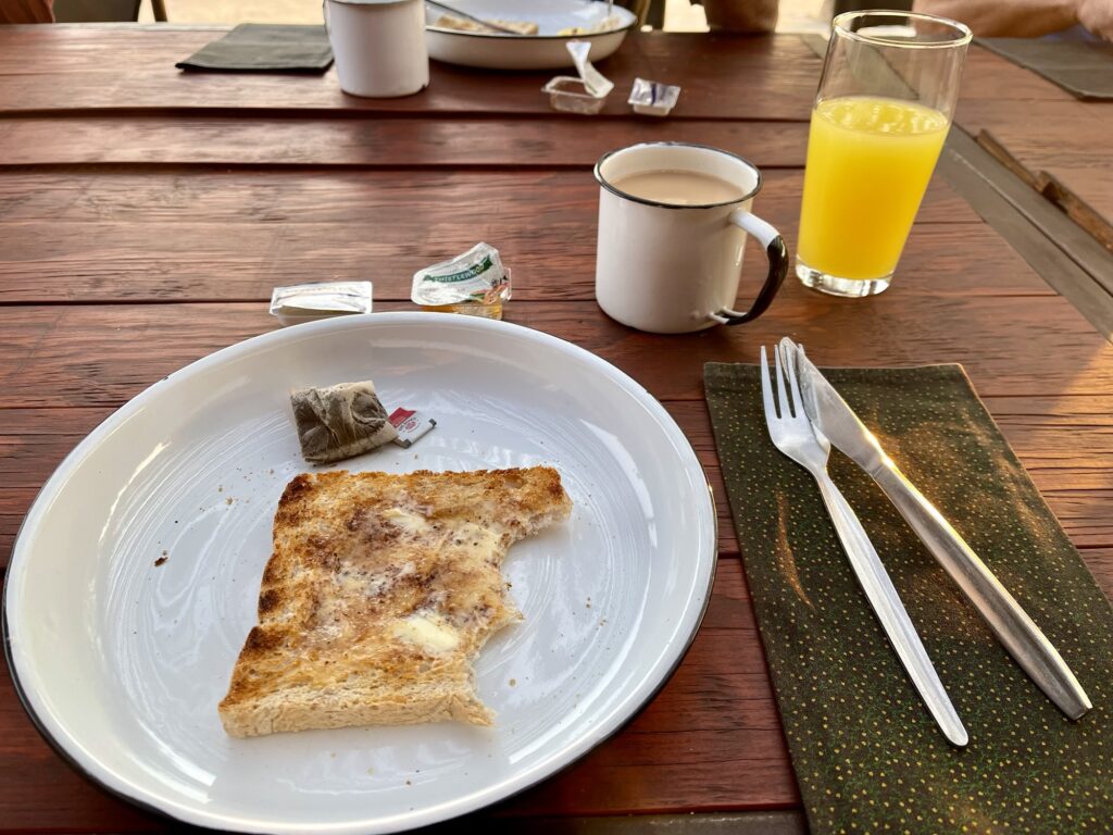 Um 6:30 gab es Frühstück, das Thema am frühen Morgen: Der Sturm heute Nacht zwischen 2:00 – 3:00. Der Sturm war heftig aber ziemlich kurz, das Zelt blieb stabil 🙂
