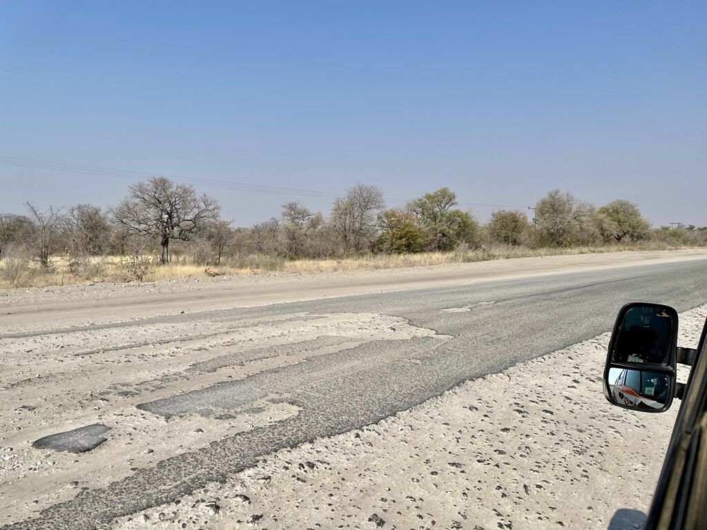 Nach dem Frühstück um 07:15 ging es los, wir verließen die Lodge und fuhren nach Maun.