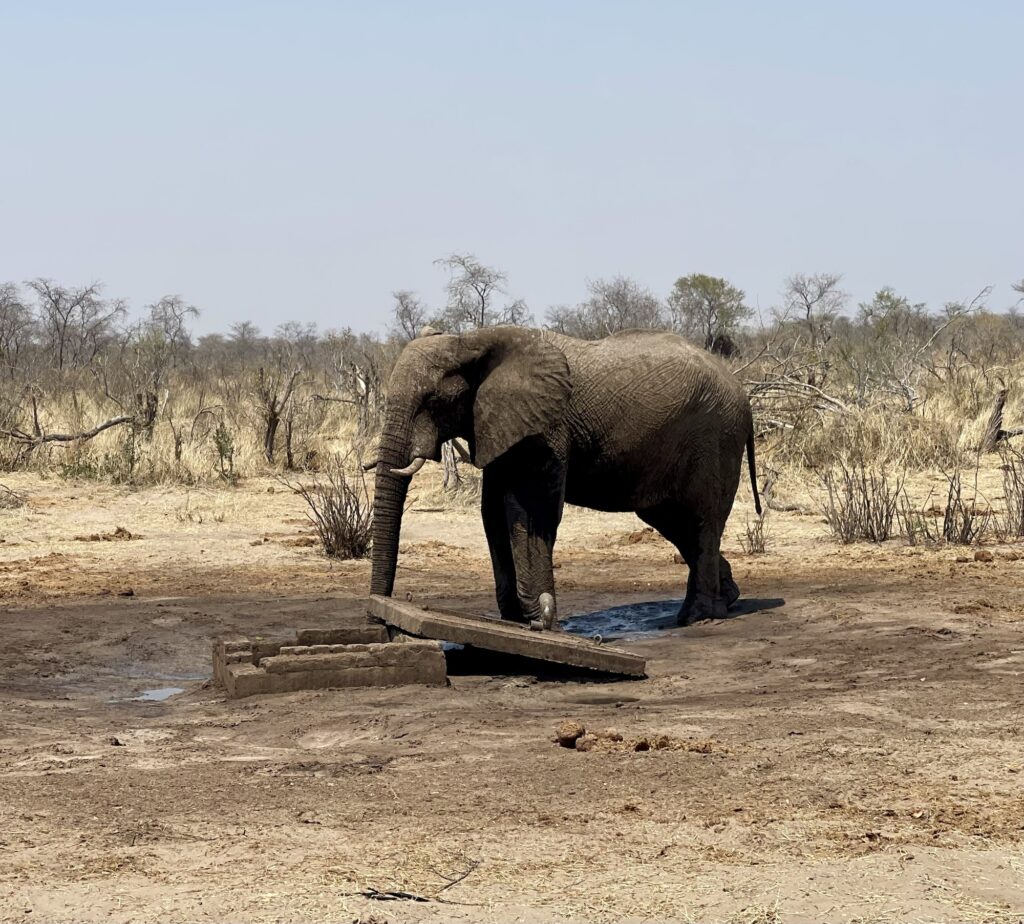 Die Elefanten laufen entlang der Straße, dort gibt es eine Wasserleitung. Sie machen diese Stellen regelmäßig kaputt in dem Sie die Leitungen beschädigen um an das Wasser zu gelangen. Wenn man die Betonplatte sieht, was sie für eine Kraft aufwenden müssen.