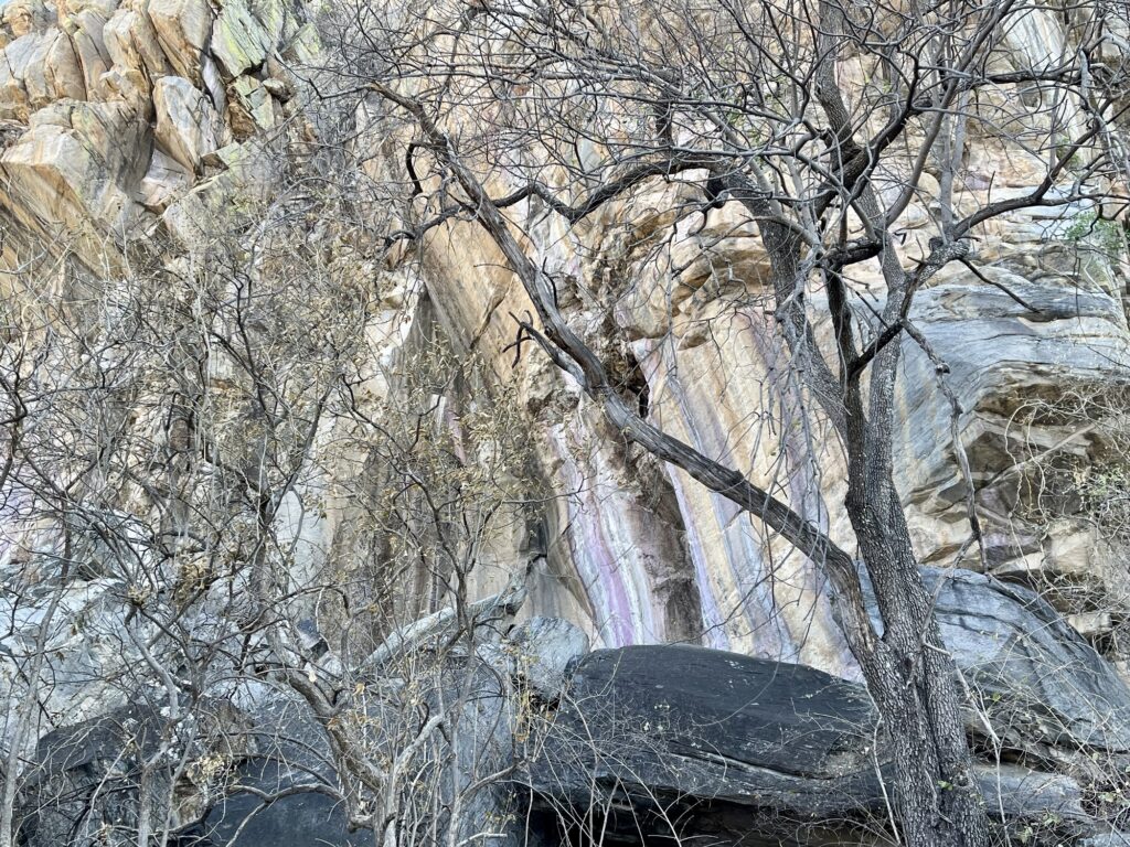 Die Rinde sieht aus wie ein Fels, ist aber sehr weich. Dieser Baum transportiert viel Wasser an dem sich auch Tiere bereichern.