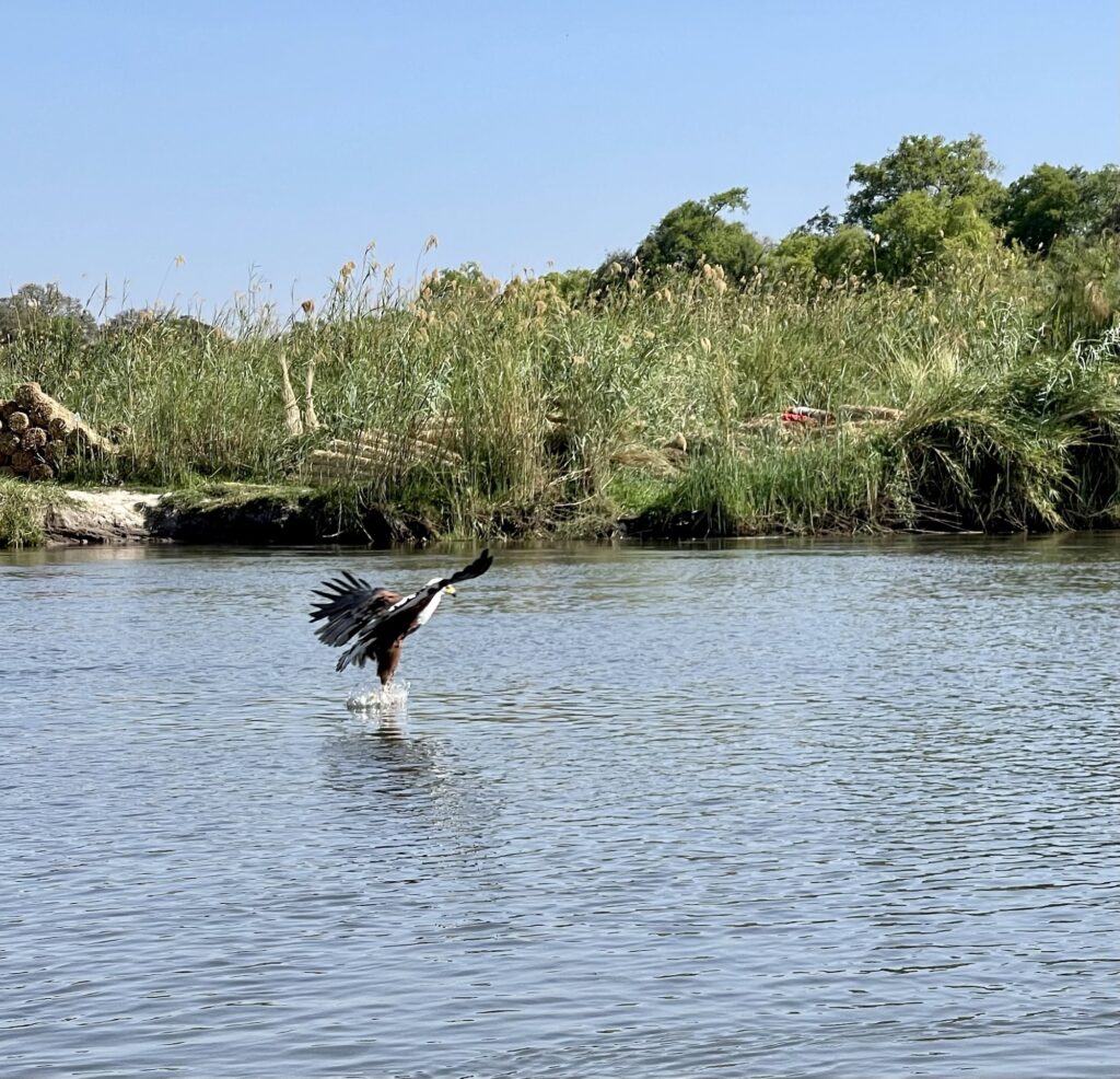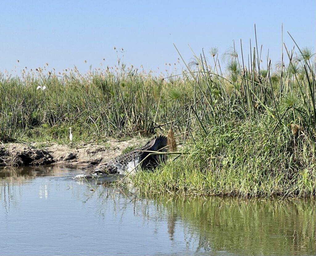 Wir sahen viele Vögel, Adler, Hippos und Krokodile, war echt toll, hat sich gelohnt. Ein richtig großes Krokodil lag am Ufer mit Maul offen, hab aber leider nur noch den Schwanz erwischt. Es ist ratz fatz ins Wasser als es uns bemerkt hat, schade.