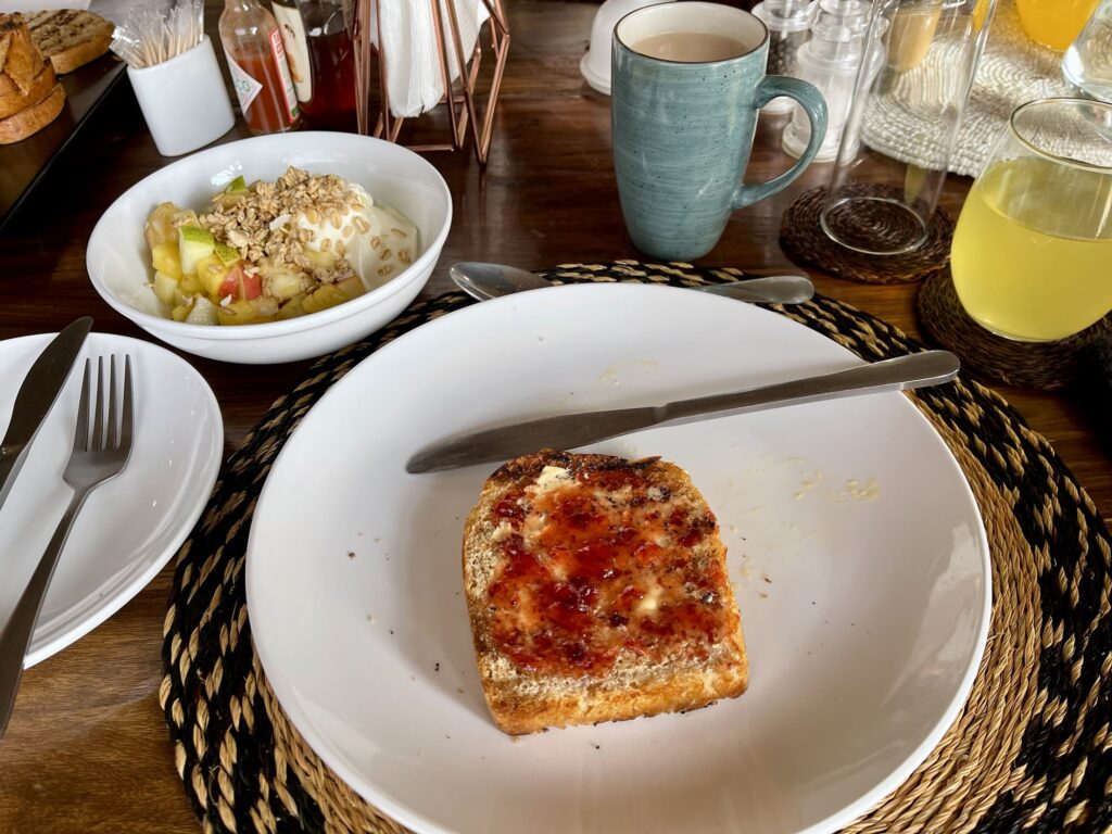 Heute gab es im Haupthaus Frühstück, das erste Mal hier, sonst ja immer in der Natur.