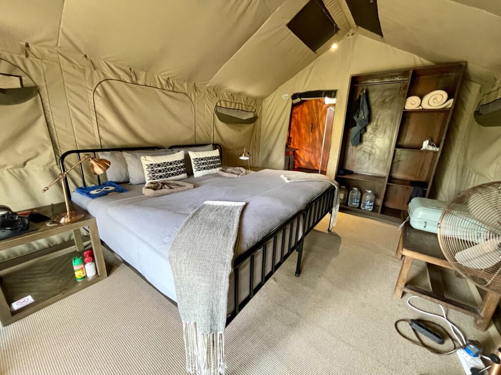 Unser Buschtaxi brachte uns zu unserem Zelt und wir machten uns Bett fertig. Morgen klingelt der Wecker nämlich wieder um 4:30.
