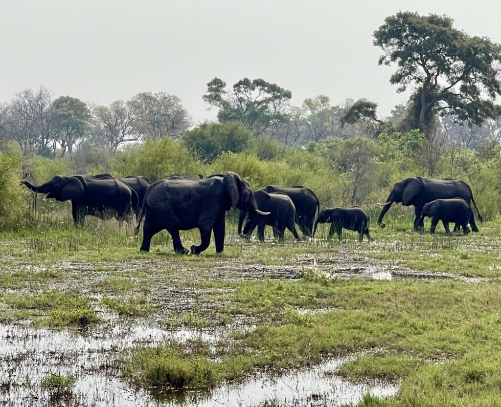 So lange wie wir hier saßen, bekamen wir Besuch von 18 Elefanten mit Baby , wau.