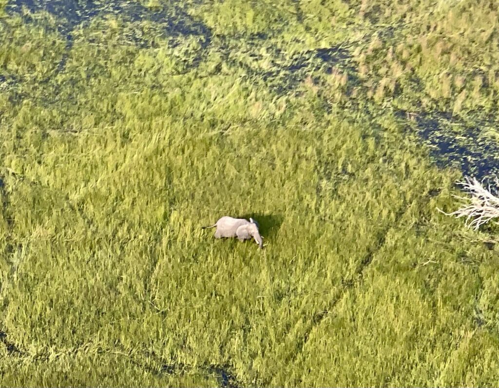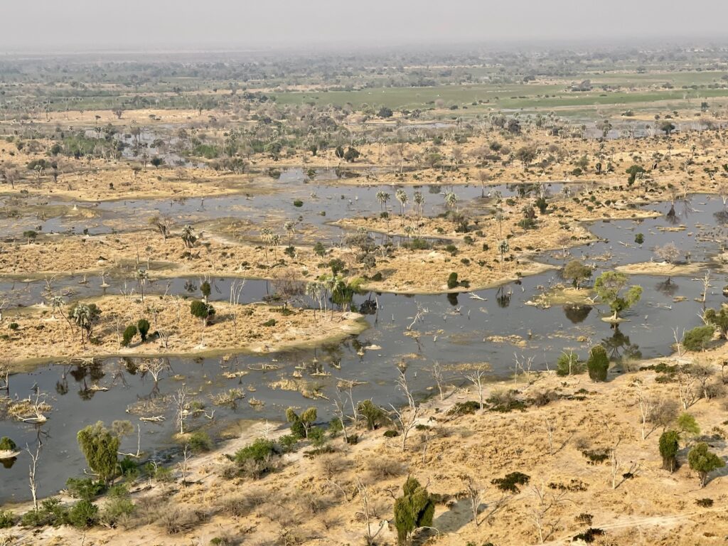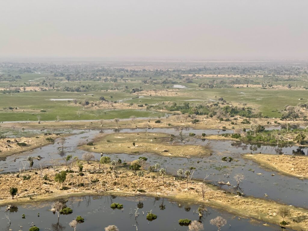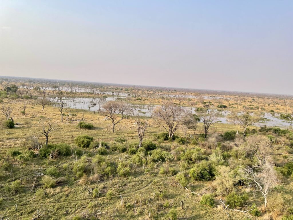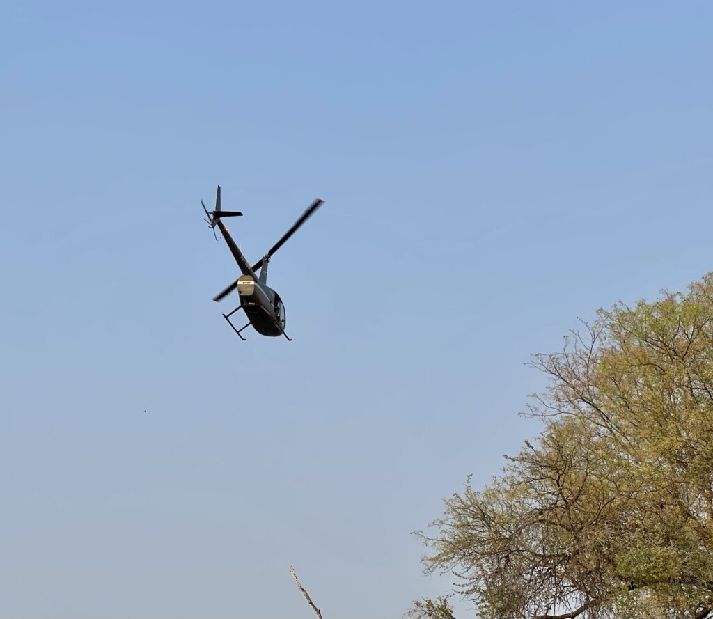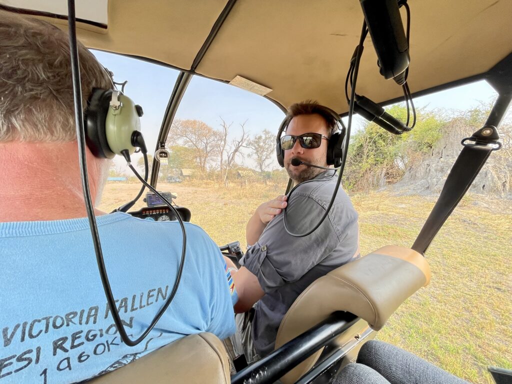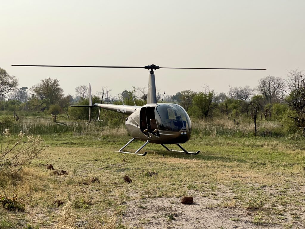 Um 16:05 ging es zum Hubschrauber, ich habe mir einen Hubschrauberflug übers Okavango Delta gegönnt.